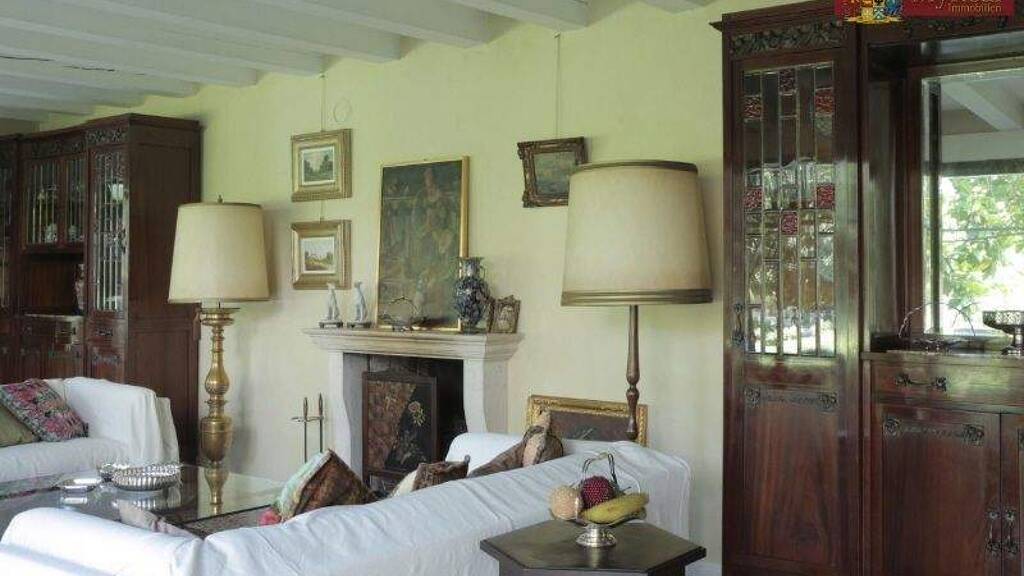 Die historische Villa liegt in einem kleinen Ort am Fuße der Alpen. Die Villa besteht aus mehreren Gebäuden die alle miteinander verbunden sind. Das Haupthaus hat ca. 780 m² Wohnfläche, das angrenzende Haus hat 100 m² Wohnfläche und einen separaten Eingang. Weiter gibt es ein Gästeapartment mit ca. 230 m² Wohnfläche; letzteres muß noch fertiggestellt werden. Der von einem Steinwall umgebene Garten im Inneren ist auf zwei Ebenen angelegt. Der originale Stall aus dem 16. Jahrhundert, der alte Küchenanbau und ein weiterer Stall haben alle renovierte Dächer und können als Garagen oder weitere Wohnflächen genutzt werden. Die Villa hat große Flächen und kann noch weiter ausgebaut werden. Die Villa ist in den Siebziger Jahren durchgreifend restauriert worden und kann sofort bezogen werden. Im Garten ist ein Schwimmteich mit über 20 m² angelegt, mit den bepflanzten Reinigungsflächen.