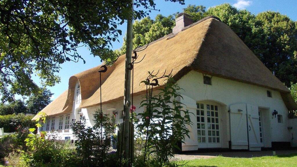 Friesisches Utlandehaus von 1785, Denkmalschutz (geschichtlich, städtebaulich, Kulturlandschaft prägend), Reetdach neu 2017