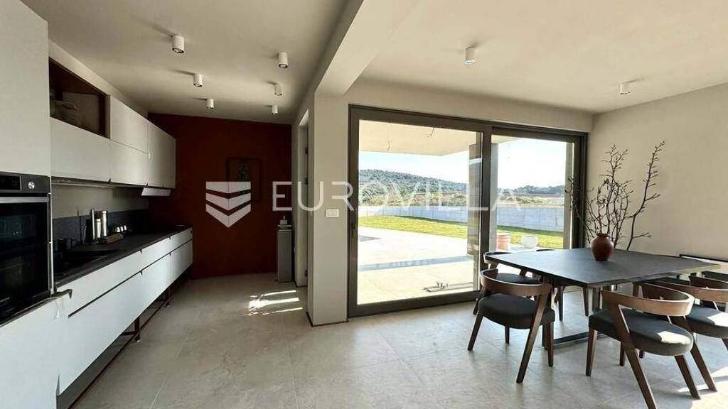 Smjestena u mirnom i ugodnom okruzenju nadomak mora, ova nekretnina pruza idealnu ravnotezu privatnosti, prirode i svakodnevne prakticnosti, sto je cini iznimno atraktivnom za dugorocan najam. Rijec je o moderno dizajniranoj novogradnji iz 2026. godine, koja se prostire na 200 m2 i nalazi na prostranoj parceli od 800 m2, u jednoj od najtrazenijih lokacija.Vec pri ulasku u prizemlje istice se idealno osmisljen dnevni prostor koji objedinjuje dnevni boravak s kuhinjom i blagovaonicom u funkcionalnu cjelinu. Duz cijelog prostora proteze se velika staklena stijena koja unosi obilje prirodnog svjetla i otvara pogled prema bazenu, stvarajuci savrsenu povezanost interijera i eksterijera. Na istoj etazi nalaze se ostava i kupaonica.Unutarnje stepeniste vode na kat gdje su smjestene tri spavace sobe, svaka s vlastitom kupaonicom, dok jedna od njih dodatno nudi i vlastitu garderobu, pruzajuci dodatnu razinu komfora.Kvaliteta stanovanja dodatno je naglasena sustavom podnog grijanja putem dizalice topline, koji osigurava ugodnu temperaturu tijekom cijele godine, dok klima uredaji u svakoj prostoriji omogucuju optimalnu rashladu u toplijim mjesecima.Unutar ogradenog dvorista osigurana su tri parkirna mjesta.Kuca se trenutno nalazi u zavrsnoj fazi uredenja, a po dovrsetku je predvidena korekcija cijene najma. Rezije se placaju prema vlastitoj potrosnji, uz odvojena brojila za struju i vodu, dok su za najam potrebna dva pologa.Ova nekretnina predstavlja savrsen izbor za sve koji traze miran, kvalitetan i inspirativan dom, bilo da je rijec o obitelji s djecom ili osobama koje zele spojiti zivot i rad u opustenom mediteranskom okruzenju. Kucni ljubimci su dobrodosli uz odredena ogranicenja, cime se dodatno prilagodava potrebama suvremenog nacina zivota.Za vise informacija slobodno nas kontaktirajte.... Vise na eurovilla.hr, ID: 786556