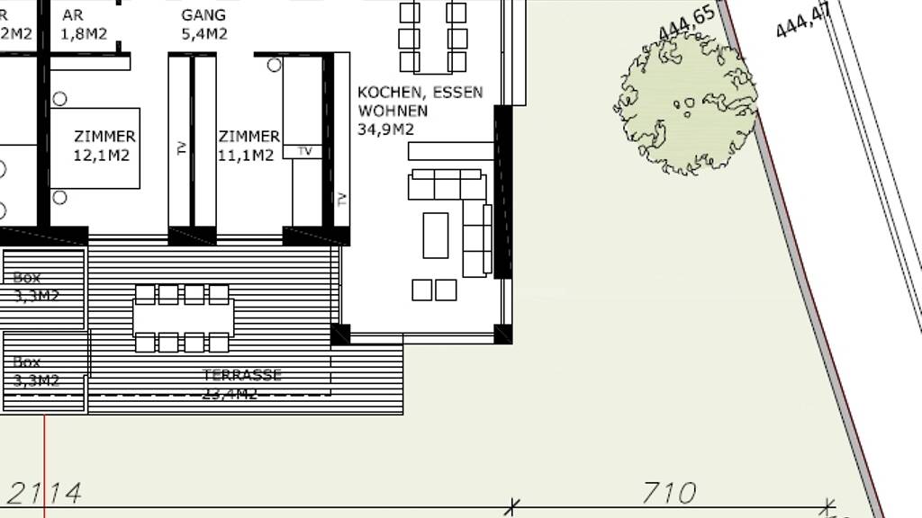 - Wohn-Esszimmer: 34,9 m²