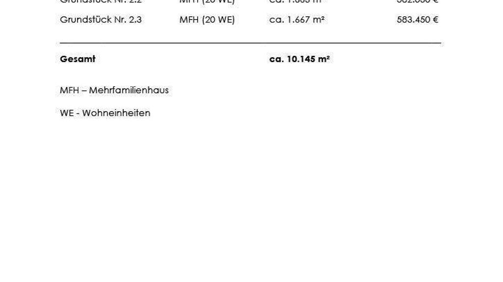 Zum Verkauf stehen vier Baugrundstücke mit unterschiedlicher Grundstücksgröße, die eine attraktive Entwicklung von insgesamt vier Mehrfamilienhäusern ermöglichen.