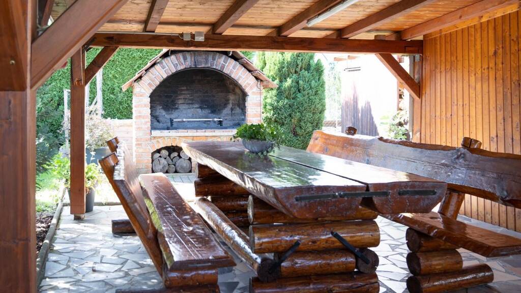 - Gemüsegarten, Grillplatz, Pavillon mit Essbereich