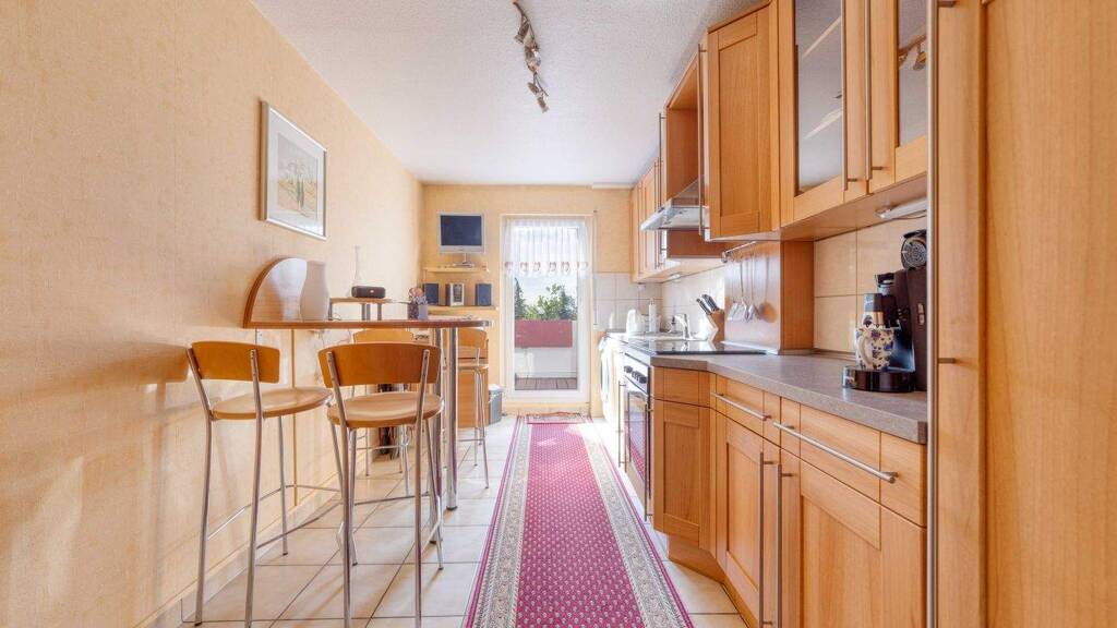 Der räumlich separate Küchenbereich bietet ausreichend Platz und kann von dem durchdachten Grundriss sehr gut genutzt werden. + Zugang weiterer Balkon