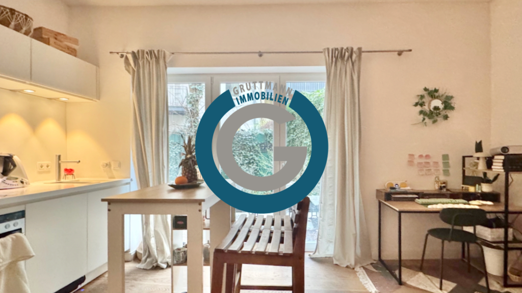 Die Wohnung ist ruhig im Erdgeschoss des Seitenflügels gelegen und verfügt über eine gemütliche Terrasse, die von Grünflächen umgeben ist.