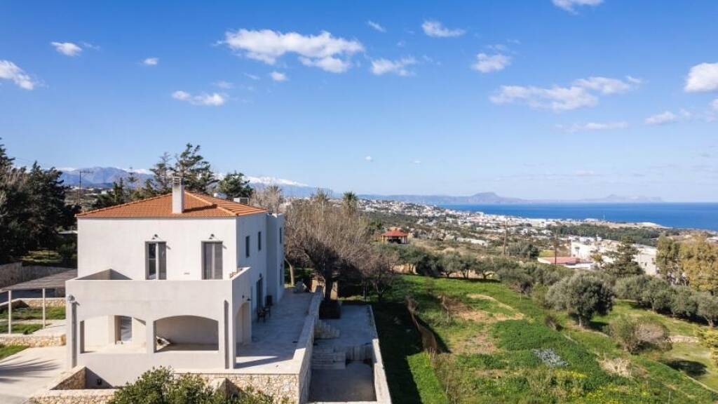 Willkommen im Haus Ihrer Träume in Rethymno, wo jede Ecke Eleganz und Ruhe ausstrahlt. Eingebettet in die ruhige Umgebung von Tria Monastiria bietet diese atemberaubende Villa einen unvergleichlichen, unverbauten Meerblick, der Ihnen den Atem rauben wird.