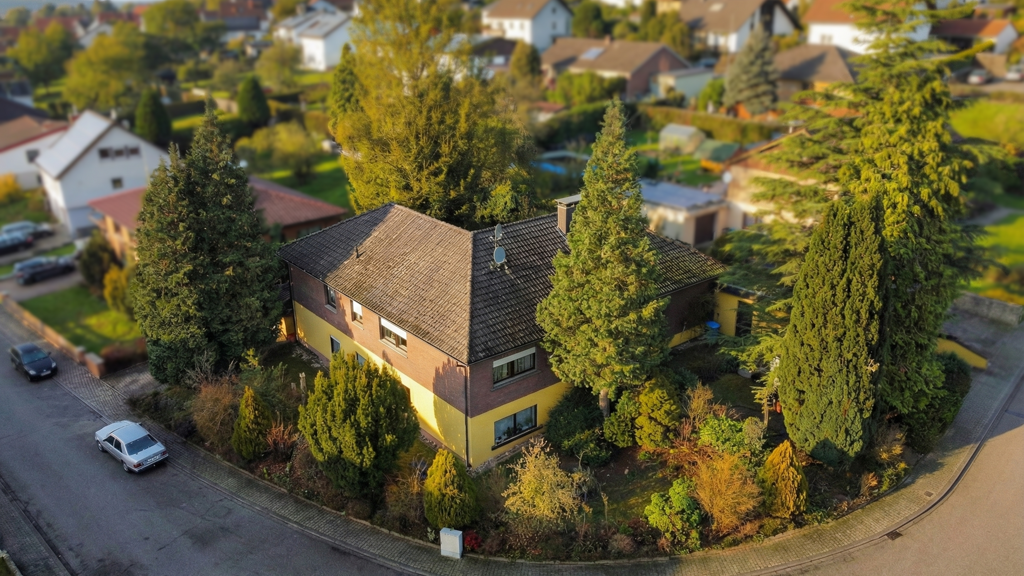 1983 erbaut präsentiert sich diese Immobilie in einer charmanten, zeittypischen Ausstattung und wartet darauf, mit neuen Ideen und frischem Leben erfüllt zu werden. Mit insgesamt ca. 229 m² Wohnfläche, aufgeteilt in Hauptwohnung und Einliegerwohnung, bietet die Immobilie außergewöhnlich viel Platz für unterschiedliche Lebensmodelle - von Mehrgenerationenwohnen über Arbeiten von zuhause bis hin zur Vermietung.