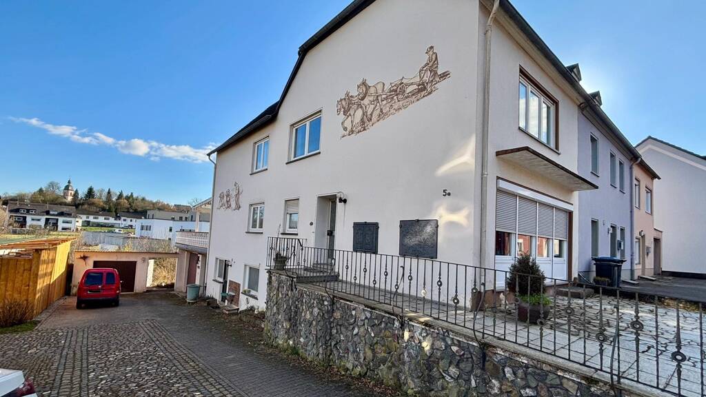 Das Einfamilienwohnhaus mit großzügigem Balkon und Weitblick wurde ca. 1972 auf einer ca. 540 m² großen Parzelle von Hetzerath erbaut. Die gepflasterte Hoffläche und die drei Garagen bieten ausreichend Platz für PKWs. Das Gesamtanwesen bietet eine Wohnfläche von insgesamt ca. 143 m² sowie zwei weiteren wohnlich eingerichteten Räumen im Keller und Dachgeschoss von ca. 68 m².