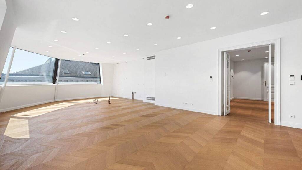 Flooded with natural light through expansive glass elements, with nearly no sloping ceilings, and a winter garden overlooking Vienna's iconic rooftops and church spires, this residence is truly unique. Premium parquet flooring, state-of-the-art home automation, underfloor heating, and air conditioning guarantee the highest standards of modern living.