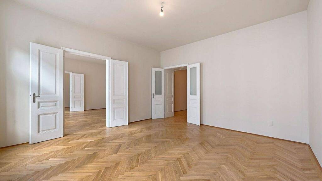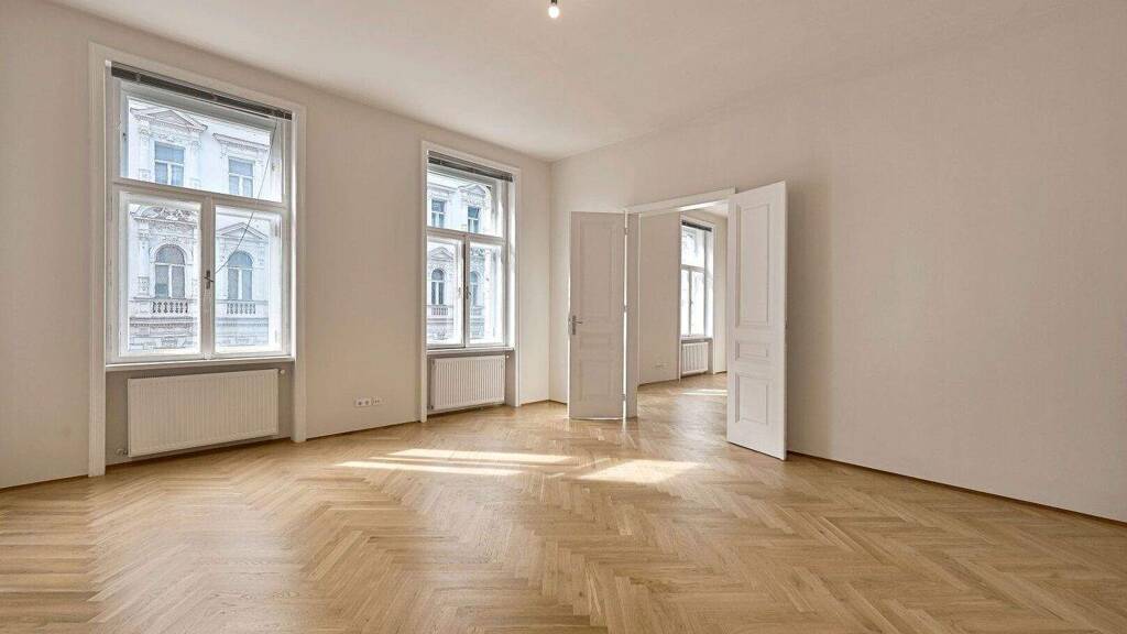 Die drei Haupträume sind Richtung Lerchenfelder Straße orientiert und weisen eine Südwest-Ausrichtung auf. Das großzügige Schlafzimmer ist in den ruhigen Innenhof nach Nordosten ausgerichtet.