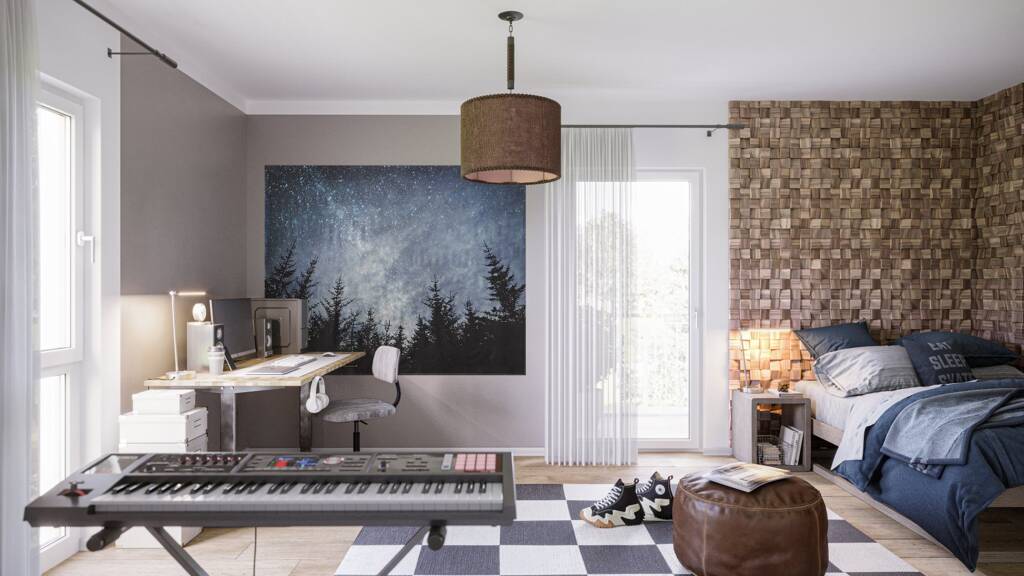 Das Zuhause-Paket beinhaltet alle Innenausbaumaterialien, Fliesen für das Erdgeschoss und bodengleiche Duschen mit Echtglasabtrennung. Aluminiumgeschäumte Rollläden verbessern den Sommerhitze-Schutz und die Wärmedämmung im Winter.