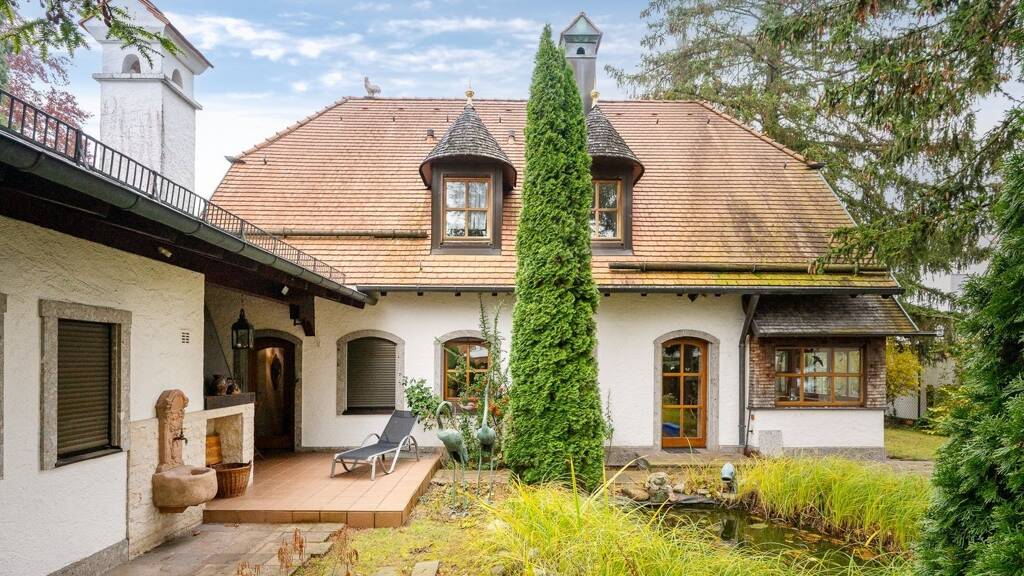 Das Dachgeschoss verfügt über 3 Schlafzimmer, ein Ankleidezimmer sowie ein großes Bad mit Eckbadewanne. Ein großer Hobbyraum, mehrere Kellerräume sowie der Heizraum befinden sich im Untergeschoss. Von hier aus gibt es auch einen direkten Zugang zur Doppelgarage. Beheizt wird das Haus mit einer Ölzentralheizung. Die Haustechnik sowie Fenster und Dach stammen noch aus dem Baujahr, sind jedoch in einem sehr guten Zustand. Das große Grundstück bietet Ihnen reichlich Potenzial, Ihre Gartenträume zu verwirklichen. Ein massives und elektrisch bedienbares Zugangstor zum Grundstück, die große Doppelgarage mit Zugang zum Keller, zwei Nebengebäude sowie ein überdachter und sichtgeschützter Freisitz mit offenem Grillkamin runden dieses selten verfügbare Angebot für Sie ab.
