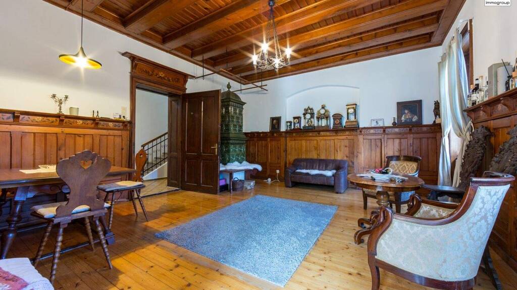 Die Villa selbst ist eines der bekanntesten Villenobjekte am Mondsee und steht nun zum Verkauf. Sie ist denkmalgeschützt und befindet sich großteils im Original-Zustand und ist noch mit zeitgenössischen Stilmöbeln eingerichtet. Das gediegene Ambiente erzählt eine mehr als 120 Jahre alte Geschichte. Kunstvolle Stilmöbel und  Wandverkleidungen aus Holz verleihen dieser außergewöhnlichen Immobilie den besonderen Flair des Mondseelandes.