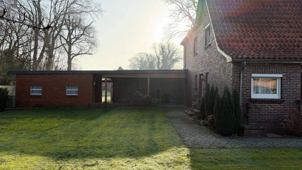 Die Immobilie befindet sich Am Kirchweg 1 in Apen, einem ruhigen Wohnbereich in der Bauerschaft Aperberg. Die Lage verbindet ländliche Idylle mit guter infrastruktureller Anbindung. Apen liegt in der Parklandschaft Ammerland und dem ostfriesischen Fehngebiet, geprägt von Kanälen, Wallhecken und grünen Deichlandschaften. Dank der Nähe zur A28 (Anschluss Apen/Remels) sowie dem Bahnhof Augustfehn bestehen sehr gute Verbindungen in Richtung Oldenburg, Bremen und Leer. Die nächste Großstadt Oldenburg ist etwa 28?km entfernt.