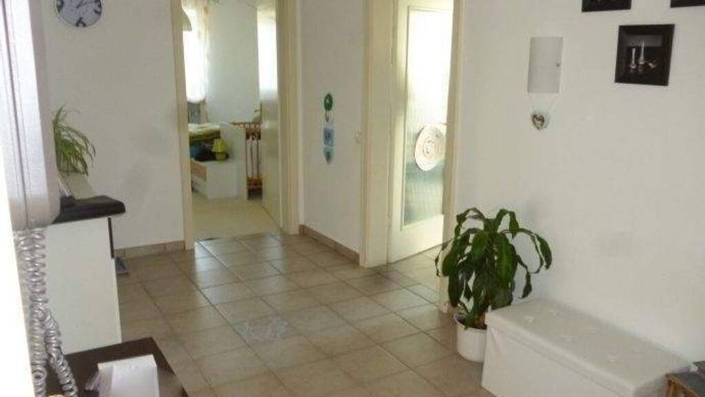 Die Wohnung befindet sich im 1.OG eines Mehrfamilienhauses mit 6 Wohneinheiten. Die Wohnung ist nach Südwesten ausgerichtet und mit neuwertigen Fenstern und teilweise neuwertigen Böden ausgestattet. Das Bad wurde vor einigen Jahren komplett erneuert und gefliest und ist mit Badewanne, Fenster und Waschmaschinenanschluss ausgestattet. Im Wohnzimmer wurde ein Laminatboden verlegt. Im Schlafzimmer befindet sich ein Naturholzboden. Der Küchenboden ist gefliest, die Diele ist ebenfalls gefliest. Zur Wohnung gehört ferner ein Kellerabteil sowie eine ca. 40 m² große Dachterrasse. Die Einbauküche (2. Küchenfoto) kann günstig abgelöst werden.