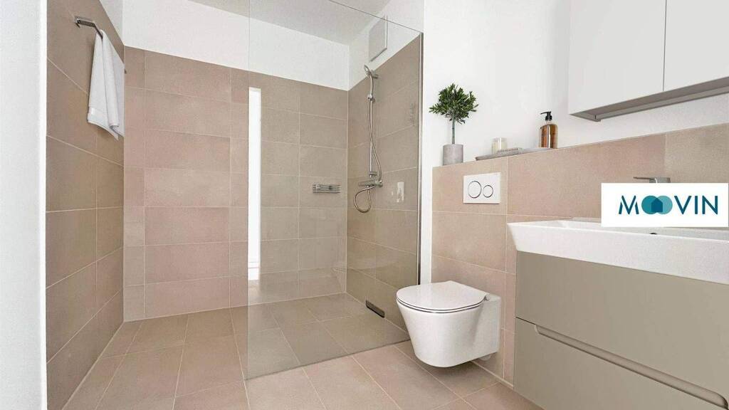 Abgerundet wird das tolle Mietangebot mit dem hochmodernen Badezimmer, das mit seinen sandsteinfarbenen Kacheln an Wänden und Boden nicht nur optisch ein Highlight ist, sondern auch mit einer komfortablen Ausstattung in Form einer Walk-In-Dusche, eines WCs, eines Waschbeckens und eines Handtuchheizkörpers überzeugt.