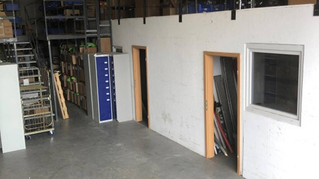 Das Gebäude umfasst zwei Lagerhallen, eine Warmhalle mit zwei Sektionaltoren. In der Warmhalle sind ein Lagerbüro, eine Teeküche und ein WC integriert. Die Gesamtfläche von 954,84 m² gliedert sich in ca.539,10 m² Hallenfläche, ca. 262,69 m² Büro-/Solzialfläche und ca. 153,05 m² Kleine Werkstatthalle.