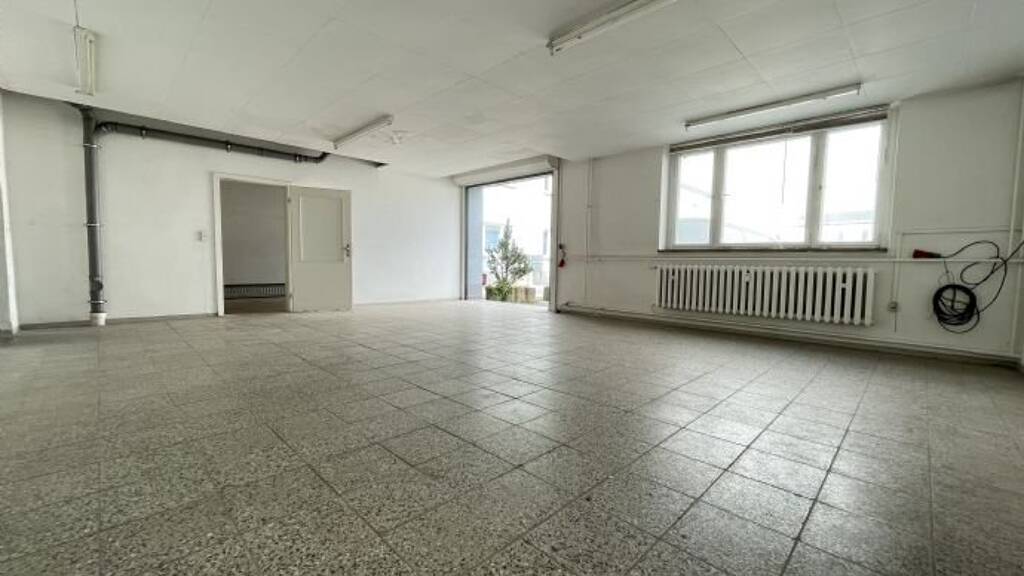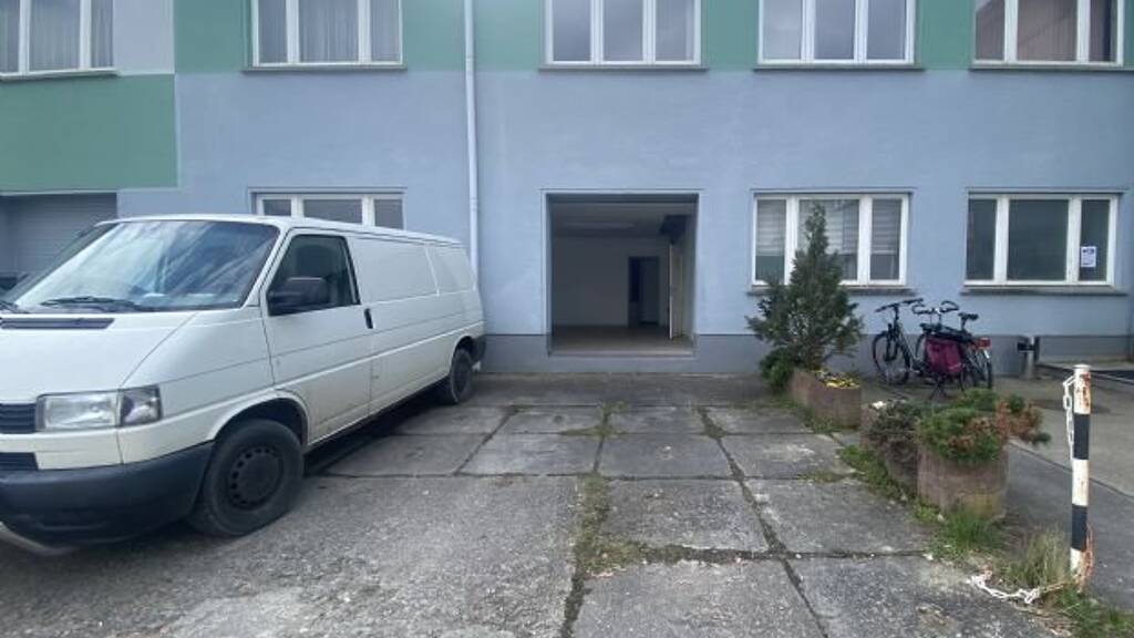 Diese zusammenhängende Gewerbeeinheit von 67,10 m² befindet sich im Erdgeschoss und ist mit einem Rolltor ausgestattet und bietet einen separaten Zugang in den Außenbereich.
