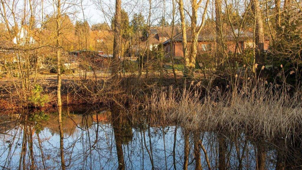 Das Grundstück mit einer Größe von 1.187,00 m² befindet sich sehr zentral im Kern des Heideortes Jesteburg und ist trotzdem ruhig. Ein schmaler Wasserlauf mündet in einem Teich am Ende des Grundstücks.