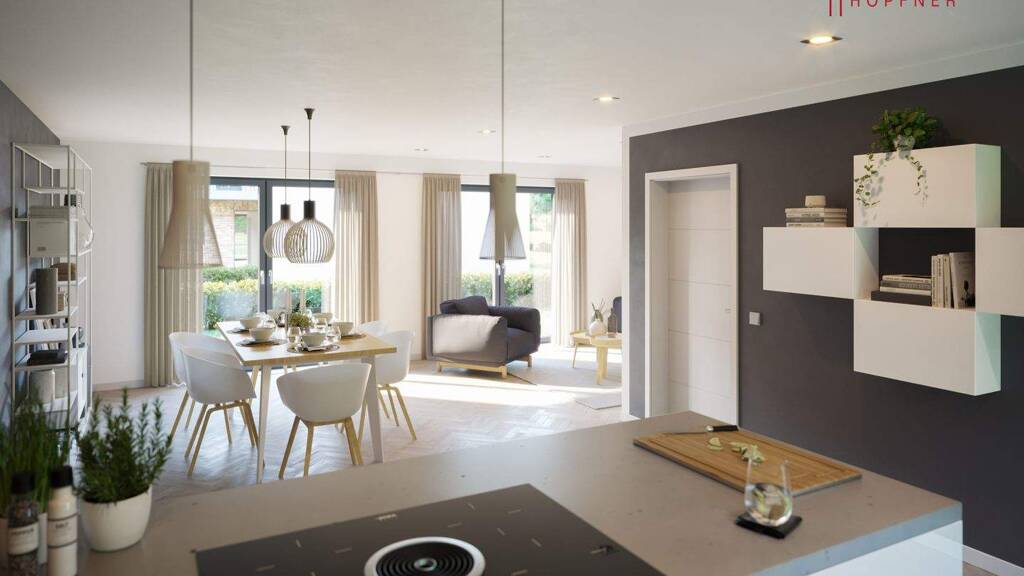 Ob Paar oder Familie - die Doppelhaushälften überzeugen durch gut konzipierte Grundrisse. Mit einem separaten Eingang zum Hauswirtschaftsraum und einem großen, offen gestalteten Wohnküchenbereich bieten sich viele Möglichkeiten für das Familienleben, für Einladungen und Grillabende auf der Terrasse. Auf der zweiten Ebene haben Sie mit vier Zimmern viel Raum für Ihr eigenes Schlafzimmer, Kinderzimmer, Gästezimmer oder Arbeitsplatz. Füllen Sie das Haus mit Leben!