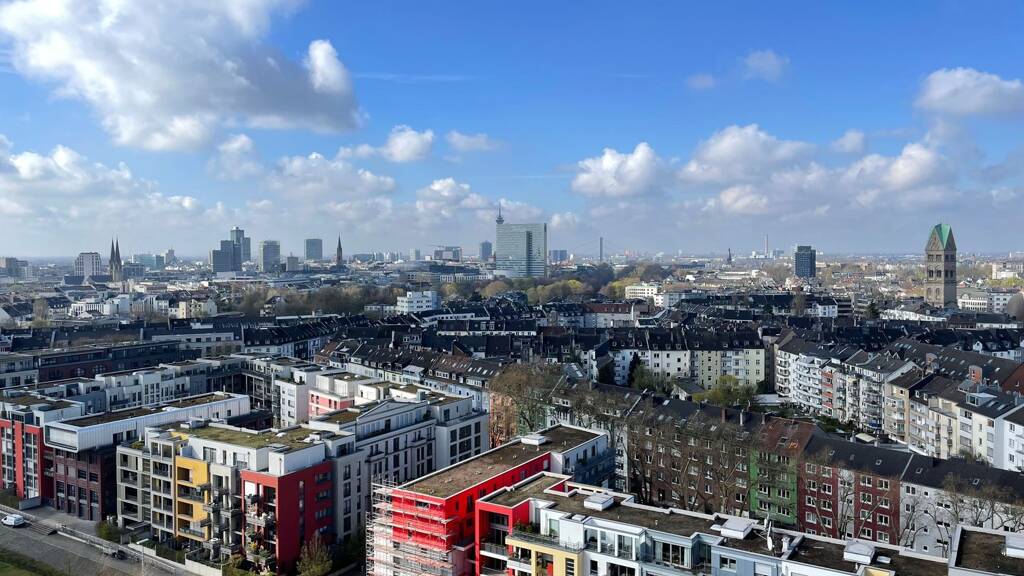 Die angebotene High-Floor-Eigentumswohnung in der 15. Etage des "Ciel et Terre" zählt zu den seltenen Einheiten mit dauerhaft freiem Panorama über Skyline, Altstadt und Rhein - ein faszinierendes Schauspiel vom Sonnenaufgang bis zum Sonnenuntergang.