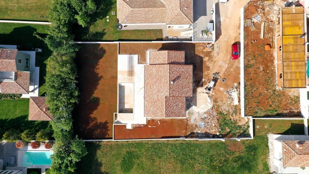 Auf einem Grundstück von 1038 m2 entsteht eine Villa mit einer Wohnfläche von 160 m2. Es erstreckt sich über das Erdgeschoss und besteht aus einem Flur, einer Toilette, drei Schlafzimmern mit eigenen Badezimmern, einem Abstellraum und einem offenen Wohnzimmer und einer Küche mit Esszimmer, von wo aus man auf die überdachte Terrasse gelangt. Große Glaswände sorgen für viel natürliches Licht und direkten Zugang zur Terrasse und zum Garten, wo sich ein 32 m² großer Swimmingpool und eine Liegewiese befinden. Beim Bau wird eine Kombination hochwertiger, hochwertiger und moderner Materialien verwendet, so wird ein ALU-Tischlerei installiert und für die Böden sind Keramikfliesen in Holzimitation vorgesehen. In der ersten Phase wird in jedem Raum eine Fußbodenheizung und eine Klimaanlage installiert. Ohne Möbel verkauft. Der Hof wird im mediterranen Stil gestaltet und verfügt über drei Parkplätze. Die Fertigstellung ist für Frühjahr 2024 geplant.