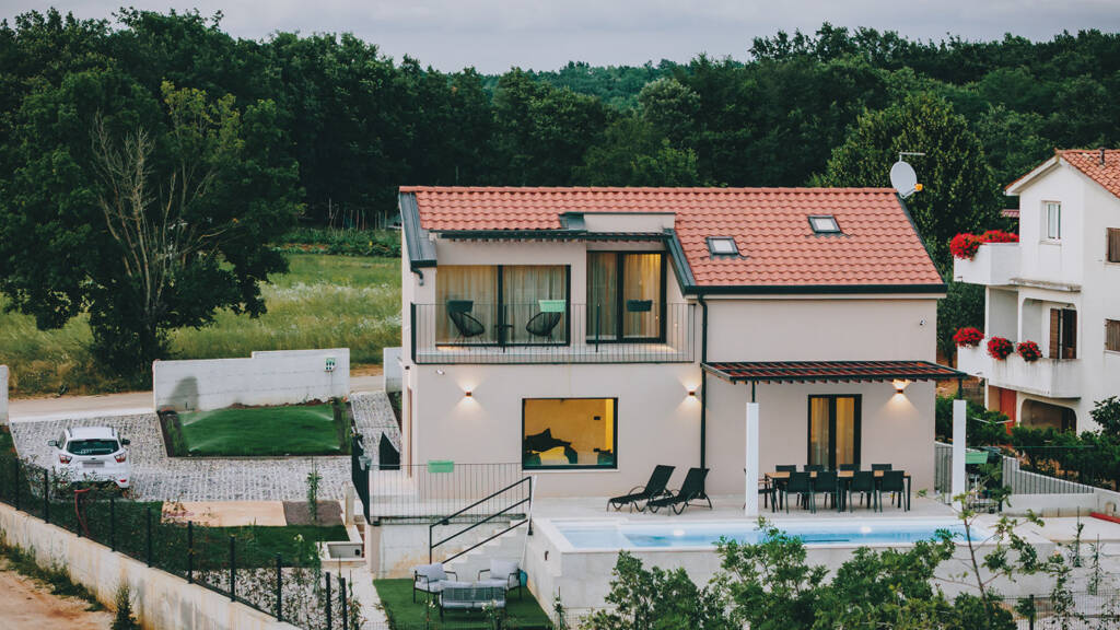 Diese Villa, erbaut im Jahr 2023/24, liegt im idyllischen Ort Basici, etwa 12 km von der malerischen Küstenstadt Porec entfernt. Eingebettet in eine ruhige, ländliche Umgebung, bietet diese Immobilie ein gemütliches und geräumiges Zuhause auf ca. 197,96 m² Wohnfläche mit einem unverwechselbaren mediterranen Flair.