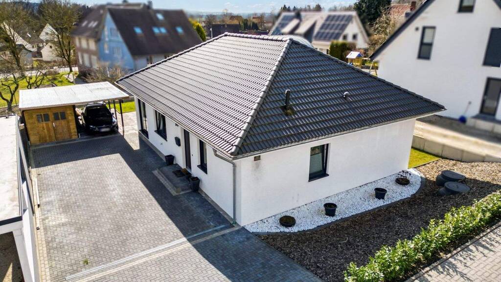 Dieser moderne Bungalow aus dem Jahr 2021 vereint stilvolles Wohnen mit hoher Funktionalität auf einer Ebene. Mit einer Wohnfläche von rund 103 m² bietet er ein offenes, lichtdurchflutetes Raumkonzept und höchsten Wohnkomfort - ideal für Paare, die ebenerdiges Wohnen in zeitgemäßer Architektur schätzen.