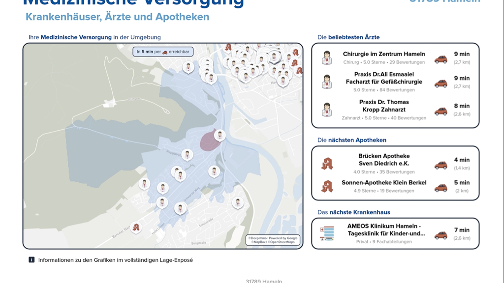 Einen Auszug aus unserem Lageexposee zu den Themen Einkaufsmöglichkeiten, Mobilität und Bildung finden Sie bei den Bildern.