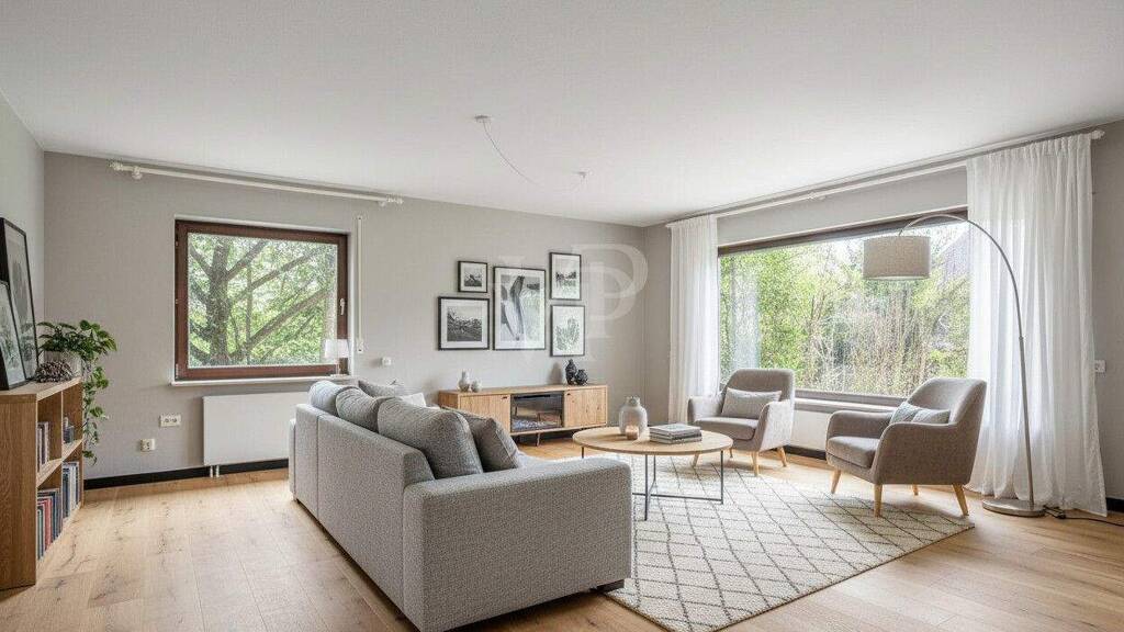 Das Haus verfügt über fünf Schlafzimmer, die flexibel als Kinder-, Arbeits- oder Gästezimmer genutzt werden können. Das Herzstück des Hauses bildet das großzügige Wohnzimmer mit einem direkten Zugang zur Terrasse und in den Gartenbereich. Die Küche ist mit einer praktischen Speisekammer ausgestattet und schafft kurze Wege für die täglichen Abläufe. Zwei Bäder sowie ein zusätzliches Gäste-WC sind auf die Bedürfnisse größerer Familien zugeschnitten und ermöglichen einen stressfreien Tagesablauf.