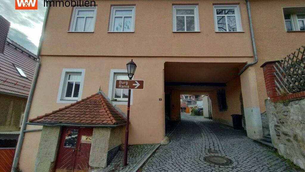 Ranis - Historisches Kleinod mit starker Anbindung im Herzen Thüringens. Das angebotene denkmalgeschützte Wohnhaus befindet sich in Ranis, einem charmanten Ort mit rund 1.700 Einwohnern in Thüringen, der seine Wurzeln bis ins 12. Jahrhundert zurückverfolgen kann. Die Gemeinde verbindet historische Bedeutung mit ruhiger ländlicher Idylle und profitiert zugleich von einer guten regionalen Anbindung. Ranis liegt in direkter Nähe zu Pößneck, dem Mittelzentrum der Region mit etwa 12.000 Einwohnern, das nur etwa fünf Kilometer entfernt ist. Die Infrastruktur ist dadurch gut erschlossen. Der Nachbarort Krölpa bietet einen Bahn-Haltepunkt an der wichtigen Strecke Saalfeld-Gera, was eine unkomplizierte Mobilität in die größeren Städte ermöglicht. Zudem liegt Ranis nahe der Bundesstraße 281, die die Autobahn A9 bei Triptis mit Saalfeld im Saaletal verbindet und so eine schnelle Anbindung an überregionale Verkehrswege gewährleistet. Die unmittelbare Umgebung des Hauses besticht durch eine einzigartige historische und naturnahe Lage: Direkt unterhalb der imposanten Burg Ranis und nahe der berühmten Ilsenhöhle gelegen - einem bedeutenden prähistorischen Fundort, der die früheste Besiedelung des modernen Menschen in Mittel- und Nordwesteuropa dokumentiert - verbindet das Objekt Geschichte und Naturerlebnis auf besondere Weise. Der Dorfkern selbst ist ruhig und geprägt von einem harmonischen Miteinander. Für Familien und Bewohner stehen grundlegende Einrichtungen wie eine Grund- und Regelschule sowie ein Kindergarten zur Verfügung, was die Lage auch für langfristige Mietinteressenten attraktiv macht. Ein Lebensmittelgeschäft sorgt für die tägliche Versorgung vor Ort. Nicht zuletzt spielt der Tourismus dank der Burg Ranis und der Ilsenhöhle eine wichtige wirtschaftliche Rolle für die Gemeinde. Diese touristische Anziehungskraft schafft zusätzliche Wertschöpfungspotenziale für Investoren. In Summe bietet Ranis eine seltene Kombination aus historischer Bedeutung, ruhigem Wohnumfeld, guter Anbindung und wirtschaftlicher Perspektive. Die Lage des Objektes macht es zu einer vielversprechenden Kapitalanlage mit nachhaltigem Wachstumspotential - insbesondere durch die attraktiven Möglichkeiten, die sich aus dem Denkmalschutz und modernem Wohnkomfort ergeben.