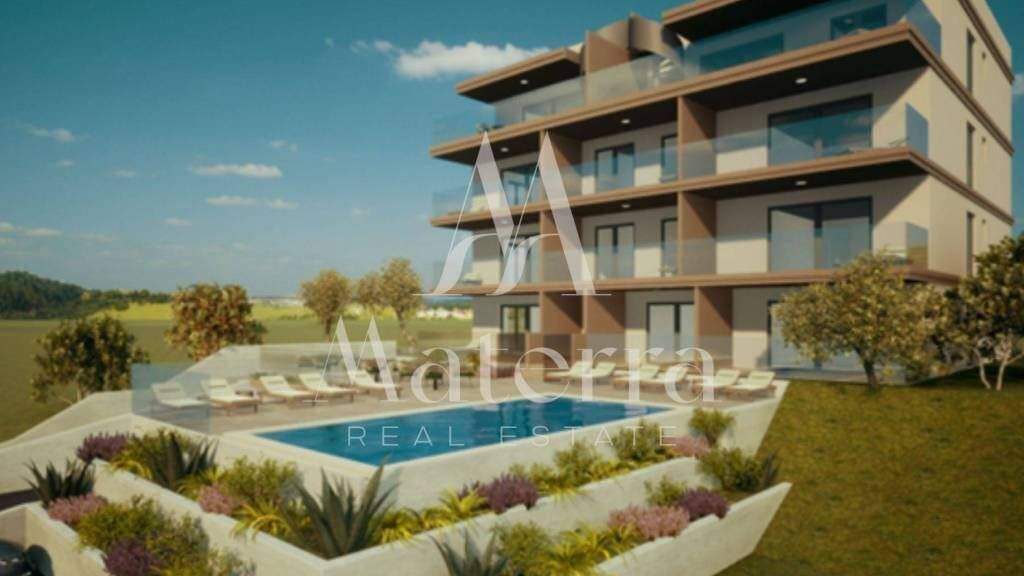 In attraktiver Lage, nur 500 Meter vom Zentrum von Primosten entfernt, entsteht ein modernes Wohngebäude mit insgesamt 11 Wohneinheiten. Es vereint höchste Bauqualität, Energieeffizienz und modernes Design mit einem atemberaubenden Blick auf das Meer und die Halbinsel von Primosten.