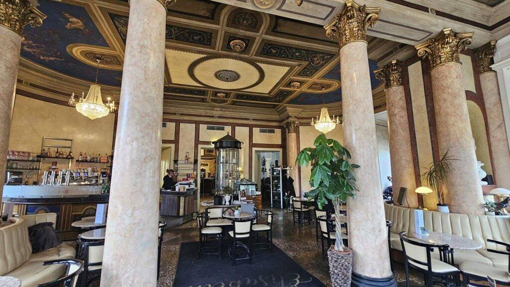 Die Lounge, angelehnt an die italienischen Renaissance, wurde von dem berühmten Baumeisters Tallachini kreiert und ist im Original erhalten. Von deren gemütlichen Sitzgelegenheiten geniesst man einen unglaublichen Blick in die historisch verzierte Kuppel des Hauses und kann die südländisch romantische Atmosphäre bei einem Cocktail oder einem guten Wein geniessen.