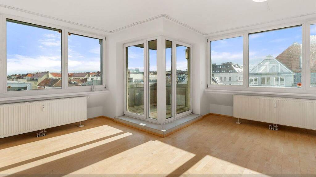 Diese außergewöhnliche Dachgeschoss-Maisonette bietet großzügigen Wohnkomfort auf zwei Ebenen und besticht durch ihre lichtdurchflutete Architektur sowie eine durchdachte Raumaufteilung. Die Wohnung liegt im 7. Liftstock eines gepflegten Gebäudes aus dem Jahr 1996 und präsentiert sich in einem zeitlosen, gepflegten Zustand.