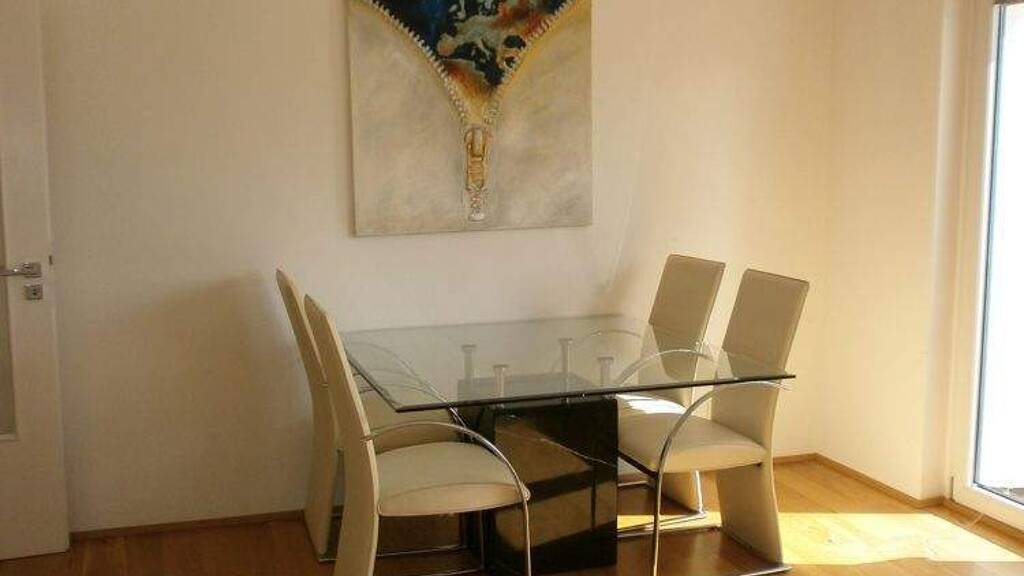 Ausstattung: Die Einrichtung besteht aus weißen italienischen Lack-Design-Möbeln sowie einem weißen Ledersofa und zwei TV-Geräten im Wohnzimmer und Schlafzimmer. Die komplette Wohnung ist mit edlem Eiche-Holzdielen-Parkett-Bodenbelag ausgestattet und mit Wänden in glattputz-Weiss. Eine weiße Lack-Einbauküche der Firma Nolte mit brasilianischem Granit mit allen Elektro-Geräten und kompletter Ausstattung mit Geschirr, Töpfen, Besteck etc. ist ebenfalls in der Ausstattung enthalten. Das Badezimmer mit großem Fenster ist mit Badewanne und Dusch-Abtrennung in weiß mit großem Spiegel und Waschtisch-Unterschrank ausgestattet. Die Wohnung ist zur reinen Südseite ausgerichtet und man hat auf dem Balkon den ganzen Tag Sonne! Die Einrichtung wird höchsten Ansprüchen gerecht! In den Nebenkosten sind außer den üblichen Nebenkosten auch Internet, GEZ, Kabel-TV und Strom pauschal enthalten! Es sind keine extra Nebenkosten zu entrichten. Die Miete mit den Nebenkosten versteht sich als Pauschalmiete. Es erfolgen keine Nachberechnungen!. Eine Reinigungskraft reinigt das Apartment einmal in der Woche. Zur Wohnung gehört weiterhin ein Tiefgaragenstellplatz der für Euro 80,- € mtl. angemietet werden kann.