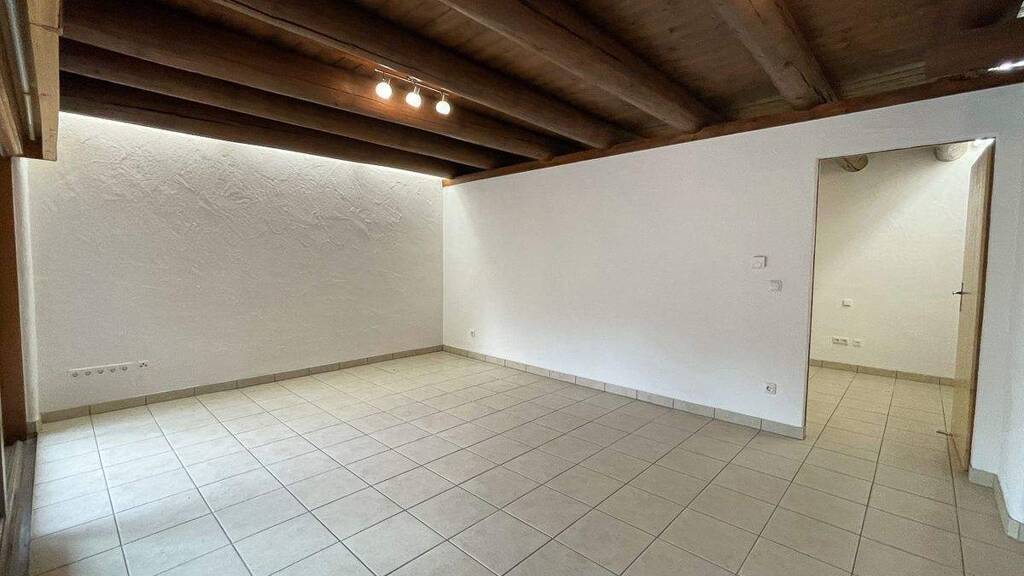 Die Räumlichkeiten verfügen über einen großen offenen Raum mit großen Fensterfronten hin zur eigenen Terrasse und den gemeinschaftlich zu nutzenden überdachten Freisitz. In dem offenen Büroraum ist eine Küchenzeile inklusive Elektrogeräten integriert. Außerdem gibt es einen separaten Raum (ohne Fenster) sowie ein weiterer Abstellraum in welchem eine Waschmaschine aufgestellt werden kann.