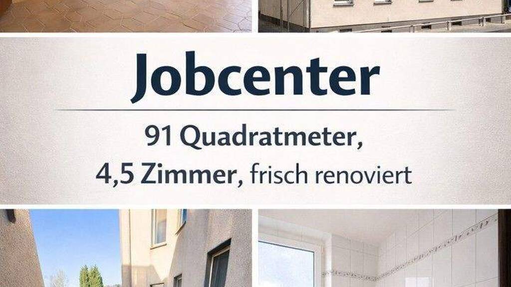 Jobcenter-Empfänger aufgepasst - deine neue Wohnung ist fertig! Du beziehst Bürgergeld vom Jobcenter? Dann bist du bei uns genau richtig! Wir vermieten gezielt an Leistungsempfänger und helfen dir beim gesamten Ablauf mit dem Jobcenter. Unser Ziel: Schöner Wohnraum für dich und deine Familie - unkompliziert und fair. Das bieten wir dir: ? Direkte Kostenübernahme durch das Jobcenter ? Gepflegte Wohnung ? 91 m² Wohnfläche ? 4 Wohn-/Schlafräume und zusätzlich Küche ? 4.5 Zimmer ? Balkon ? Keller ? Abstellräume ? Gepflegtes Mehrfamilienhaus in familienfreundlicher Lage ? 3. Obergeschoss So einfach geht's: Schreib uns eine Nachricht - wir erklären dir alles Schritt für Schritt.
