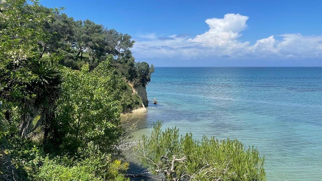Die Nordküste von Korfu ist ein Gebiet mit Oliven und Zypressen, malerischen Buchten, klarem und smaragdgrünem Wasser des Ionischen Meeres, schönen Aussichten.
