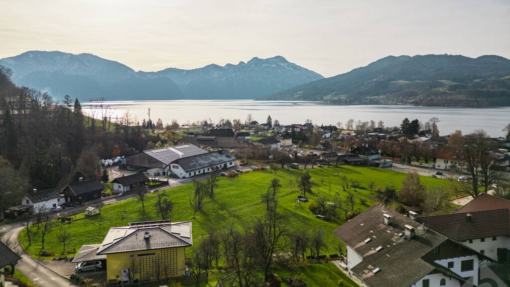 Das Haus liegt in Unterroith, einem ruhigen Ortsteil der Gemeinde Steinbach am Attersee, leicht erhöht über dem Ostufer des Attersees. Die Westausrichtung sorgt für lange Abendsonne und eindrucksvolle Sonnenuntergänge - mit freiem, weitläufigem Panoramablick über den türkisblauen See hinweg bis zu den sanften Hügeln am Westufer. Im Rücken erhebt sich das Höllengebirge; Wiesen, Obstbäume und locker bebaute Einfamilienhäuser prägen die Umgebung und verleihen der Adresse eine angenehme, ländliche Privatsphäre ohne Durchzugsverkehr.
