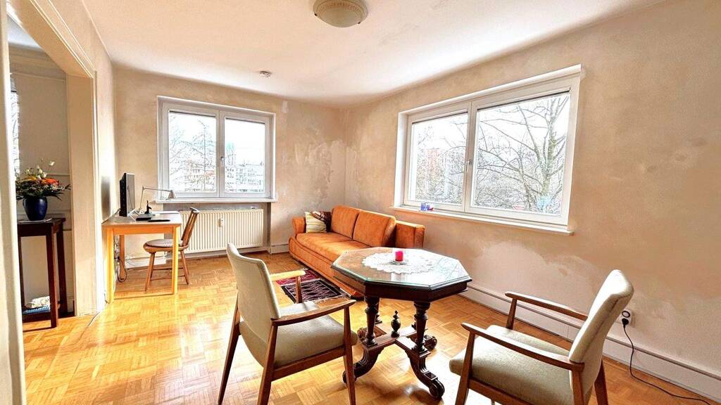 Die hier angebotene Eigentumswohnung ist im 2. Obergeschoss (ohne Fahrstuhl) eines im Jahre 1952 errichteten Mehrfamilienhauses gelegen. Die WEG umfasst insgesamt 17 Wohneinheiten, verteilt auf zwei Eingänge. Die Beheizung erfolgt mittels Fernwärme. Die Warmwasserbereitung ist dezentral über Durchlauferhitzer geregelt. In 2010 fand eine umfassende Sanierung der Balkone sowie Überarbeitung und Anstrich der Fassade statt. In diesem Zuge wurden auch alle Fenster der Wohnung erneuert. Eine Sanierung der Grundsielleitungen und Erneuerung der Dachrinnen hat erst kürzlich stattgefunden. Das Treppenhaus wurde ebenfalls unlängst in einem sehr geschmackvollen und zur passendem Stil modernisiert.