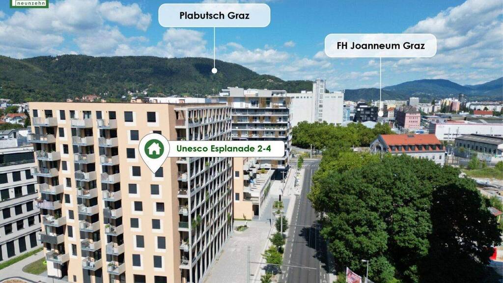 Die UNESCO Esplanade bildet das Zentrum dieses neuen Stadtteils und steht für ein modernes aber auch nachhaltiges Stadtleben. Die Lage verbindet städtischen Komfort mit Erholung im Grünen. Ein ideales Umfeld für Singles, Paare und Familien. Zahlreiche Nahversorger, Cafés, Parks sowie eine hervorragende Verkehrsanbindung machen die Reininghausgründe zu einem Ort mit Zukunft und Qualität.