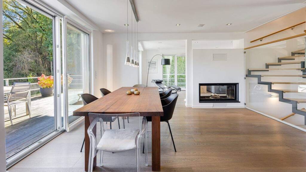 Das Einfamilienhaus vereint Lichtfülle, ein familiengerechtes Raumangebot und eine zeitlos moderne, hochwertige Ausstattung. Massive Eichendielen, Fußbodenheizung, ein XXL-Panoramakamin, elektrische Rollläden, eine Allmilmö-Küche, LED-Deckenspots und eine Granderwasser-Anlage schaffen ein äußerst attraktives Wohnumfeld. Das Raumangebot erstreckt sich über ca. 244 m² und umfasst einen Wohn-/Essbereich mit offener Küche, drei Schlafzimmer und drei Bäder. Im Gartengeschoss stehen zwei weitere taghelle Zimmer, ein Duschbad sowie Hauswirtschafts- und Abstellflächen zur Verfügung. Eine Doppelgarage mit Starkstromanschluss macht dieses Zuhause perfekt.