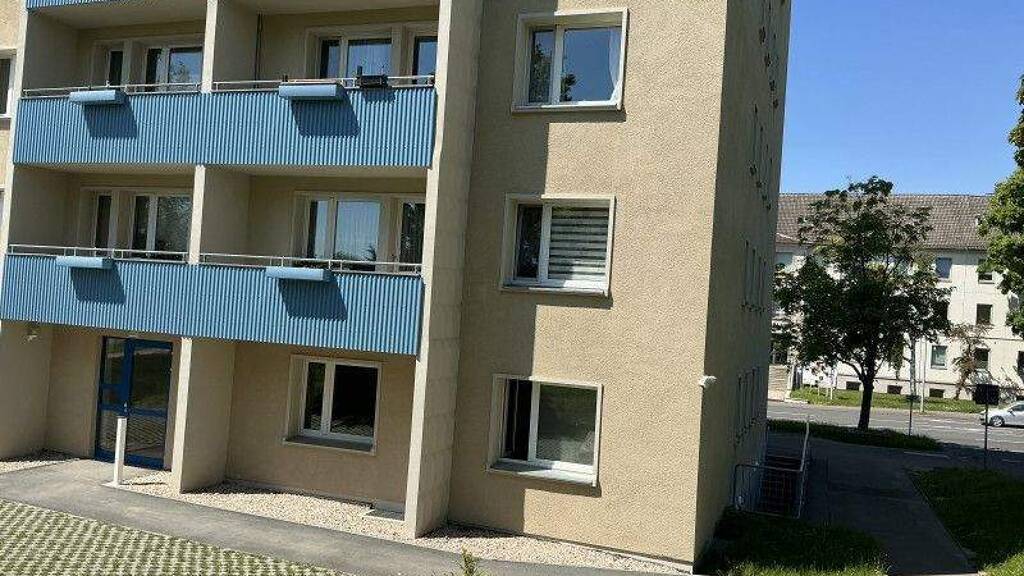Ab Oktober 2025 steht diese frisch sanierte 2-Raum-Wohnung zum Einzug bereit. Bequem gelangen Sie mit dem Aufzug ins 5. Obergeschoss. Aus allen Fenstern und von Ihrem Balkon haben Sie einen grandiosen Ausblick über die Stadt und darüber hinaus. Modern und mit vielen Extras präsentieren sich Ihnen diese Räume in gehobener Ausstattung. Frisch tapezierte Decken und Wände, neuer Bodenbelag in Laminatoptik sind ebenso Bestandteil der Ausstattung wie die Multimediadosen in Wohn- und Schlafzimmer, die Einbau-Deckenspots im Flur und Bad und die weißen Innentüren. Das Tageslichtbad ist türhoch gefliest. Wohn- und Schlafzimmer sind vom Flur aus begehbar und lassen sich auf Grund der großen Wandflächen gut möblieren. Die Tür zum Balkon ist mit einem Haltegriff versehen. Ein Abstelltraum im Flur bietet zusätzlichen Stauraum.