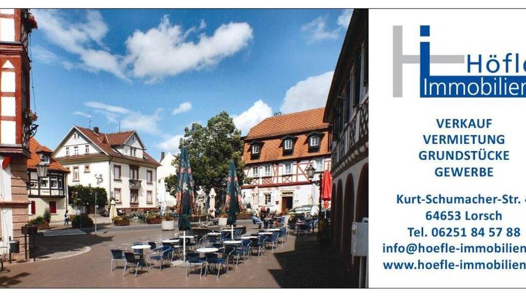 Die 3,5 ZKB Wohnung befindet sich in Waldrandlage von Lorsch. Lorsch ist eine Kleinstadt, am Fuße der Bergstraße, mit ca. 13.000 Einwohnern und verfügt über eine hervorragende Infrastruktur und Verkehrsanbindung. Die Autobahnen A67 und A5 befinden sich in unmittelbarer Nähe und auch die Bus- und Bahnverbindungen, in die angrenzenden Nachbarstädte sind vorhanden. Im Sommer locken die Straßencafés rund um den Marktplatz und verleihen dem Ort einen mediterranen Flair.