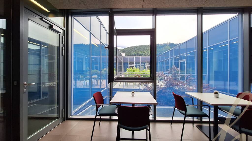 Eine besetzte Rezeption sorgt für einen professionellen Empfang von Kunden und Geschäftspartnern, während eine voll ausgestattete Kaffeeküche für das leibliche Wohl der Mitarbeiter sorgt. Großzügige Outdoorflächen bieten die Möglichkeit für entspannte Pausen im Freien und fördern das Wohlbefinden der Mitarbeiter.