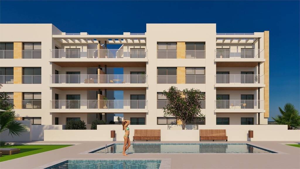 Brandneue Wohnanlage mit Wohnungen mit 2 und 3 Schlafzimmern im Herzen von La Zenia (Orihuela Costa), nur 400 Meter vom Einkaufszentrum "La Zenia Boulevard" und einen kurzen Spaziergang vom Strand entfernt. Die Wohnanlage besteht aus fünf Wohnblöcken, wobei man die Wahl hat zwischen Erdgeschosswohnungen mit Privatgärten, Wohnungen im ersten und zweiten Stock mit Terrassen und Penthäusern mit privaten Dachterrassen. Alle Wohnungen verfügen über einen eigenen Parkplatz abseits der Straße, und die Bewohner können die wunderschön angelegten Gemeinschaftsgärten mit großem Swimmingpool und Entspannungsbereichen nutzen. Die Innenräume verfügen über einen offenen Wohn- und Essbereich mit amerikanischer Küche, ein Hauptschlafzimmer mit eigenem Bad, ein weiteres Doppelschlafzimmer und ein Gästebad. Die Häuser haben eine Vorder- und eine Hinterterrasse, wobei die Hauptterrasse sowohl vom Wohnbereich als auch vom Hauptschlafzimmer aus zugänglich ist. Das zweite Schlafzimmer hat Zugang zu einer kleineren Terrasse. Die Immobilie verfügt über eine vorinstallierte Klimaanlage, Fußbodenheizung in den Bädern und Einbauschränke in allen Schlafzimmern. La Zenia befindet sich in der Nähe der Autobahn AP-7 an der Orihuela Costa zwischen Playa Flamenca und Cabo Roig. In La Zenia gibt es einen schönen Strand und eine Reihe von Bars, Restaurants, Geschäften und Supermärkten, die den Ort zu einem idealen Urlaubsziel machen. Genießen Sie einen Spaziergang entlang der Promenade von La Zenia und Cabo Roig und bewundern Sie den Yachthafen und die mit der blauen Flagge ausgezeichneten Sandstrände. Die Gegend hat das größte Einkaufszentrum La Zenia Boulevard, die sehr beliebt ist und die lokalen Golfplätze von Villamartin, Las Ramblas, Campoamor und Las Colinas Golf und Country Club sind innerhalb von 5 Minuten Fahrt.