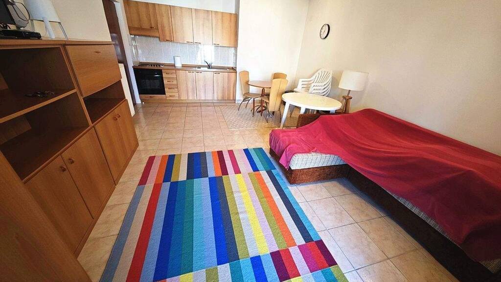 Die Wohnung liegt im ersten Stock eines hochwertigen und sehr gepflegten Gebäudes. Die Gesamtfläche beträgt 48 m² und umfasst einen Eingangsbereich, ein Wohnzimmer mit Küche und Essbereich, ein Schlafzimmer, ein Badezimmer sowie einen überdachten Balkon. Das Innere der Immobilie ist in ausgezeichnetem Zustand, komplett möbliert und mit allen notwendigen Geräten ausgestattet - sofort bezugsfertig und ohne zusätzlichen Investitionsbedarf.