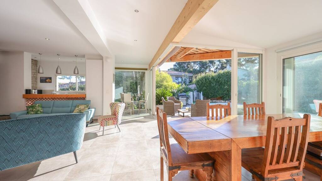 In the sought-after La Cride area, in a quiet location and a 10-minute walk from Beaucours beach, discover this 213 m2 house with generous volumes, spread over 3 levels and built on a landscaped plot of 1,055 m2 with a beautiful swimming pool.