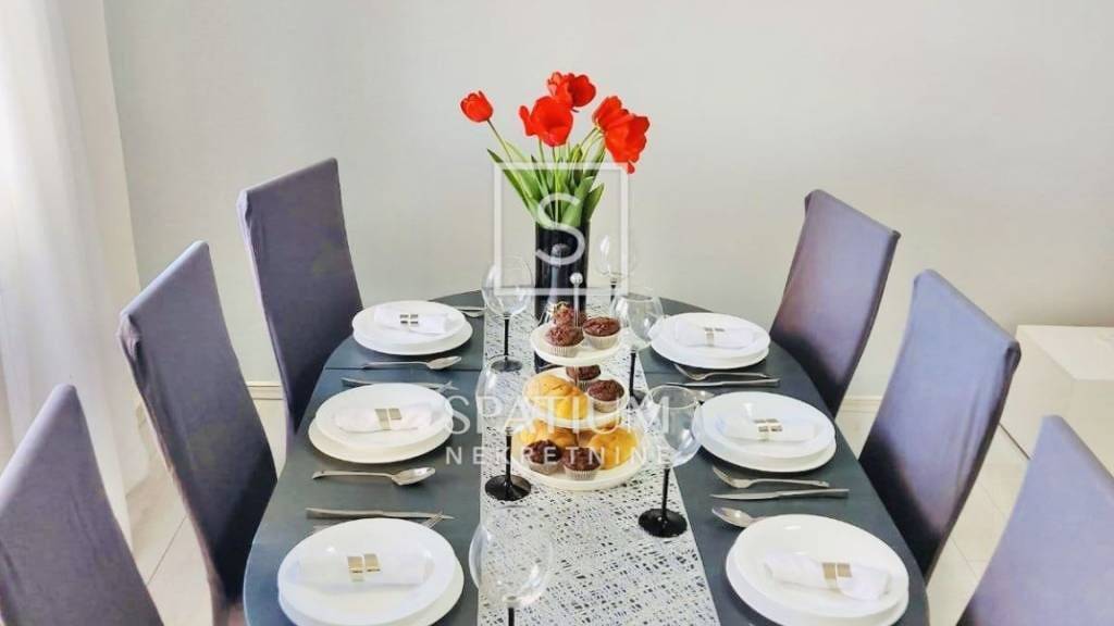 In DRAMALJ bieten wir ein renoviertes Haus mit Pool in ruhiger Lage zur Langzeitmiete an. Das 112 m² große Haus verfügt im Erdgeschoss über eine Eingangshalle, ein geräumiges Wohnzimmer, eine Wohnküche, ein Badezimmer, ein separates WC und einen Abstellraum. Über eine Innentreppe gelangt man in den ersten Stock mit zwei geräumigen Schlafzimmern, die jeweils Zugang zu einem Balkon mit Meerblick bieten. Der angelegte Garten mit großer Terrasse, Grill und Pool schafft einen harmonischen Außenbereich, der zum Entspannen und Genießen einlädt.