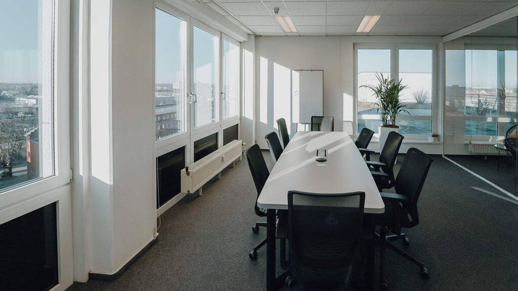 Helle und schöne Büroräume mit einem herrlichen Blick über die Stadt von der modernen Dachterrasse! Das Büro ist in modernem Stil und ergonomischen Möbeln ausgestattet. In der Küche finden Sie alles Nötige sowie einen Kühlschrank und Kaffeemachine. Space verfügt über Büros für kleine und große Teams, Besprechungsräume und Räume für die Zusammenarbeit. Die Dachterrasse steht Ihnen für eine mentale Pause und eine Verschnaufpause mit Aussicht zur Verfügung. Hier können Sie sich ab 250 €/Schreibtisch pro Monat abseits von Home-Office-Ablenkungen am coolsten Bürostandort Reinickendorfs produktiv fühlen.