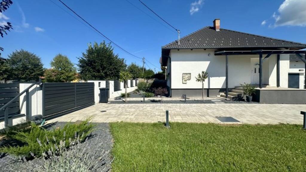 Energieausweis: ZU DIESER IMMOBILIE LIEGT DERZEIT NOCH KEIN ENERGIEAUSWEIS VOR. IN VORBEREITUNG. Im zentralen Teil der Gemeinde, in der Nähe eines Lebensmittelgeschäfts, einer Bushaltestelle, einer Schule, eines Postamts, steht dieses prächtige Einfamilienhaus mit 2 Zimmern und Wohnzimmer zum Verkauf! Hauptmerkmale: - 95qm Wohnfläche - 1200qm Wohnung, gepflegtes Grundstück - Die Fassade ist isoliert - Neue Dachkonstruktion mit Betonziegelschale - Komplett moderne technische Ausstattung: Wärmepumpenheizung - Gebläsekonvektor mit Wärmestrahlern, isolierte Türen und Fenster, elektrisches Tor, Wasserenthärtungsgerät, Sprinkleranlage, Solarpanel-kompatibel, von Innenarchitekten entworfene Innenräume, mechanisierte Küche - Das Wohngebäude ist mit dem Maschinenraum mit separatem Eingang, einer Waschküche und einem überdachten Grill verbunden. Separates Garagengebäude. Das Grundstück ist landschaftlich gestaltet, mit Ziersträuchern bepflanzt, teilweise mit Gras und teilweise mit Viacolor bedeckt. → Funktionales Design: Eingangshalle, Wohnzimmer, 2 Schlafzimmer, eines mit eigenem Kleiderschrank, Flur, Küche-Esszimmer, Bad-WC. Keramikböden in den öffentlichen Bereichen, Vinylböden in den Zimmern → Das betreffende Wohnhaus im Innenbereich wurde in einem hervorragenden technischen und ästhetischen Zustand zum Verkauf angeboten! Es bietet einen makellosen Wohnraum dank der gut durchdachten, renovierten und gestalteten Zimmer, die mit hochwertigen Materialien und viel Geschmack eingerichtet sind. → Wenn Sie sich Ihren zukünftigen Alltag in einem solchen Milieu vors Interesse? Bitte senden Sie uns ein VOLLSTÄNDIG augefülltes Kontaktformular zu, Sie erhalten dann umgehend ein ausführliches Exposé. ACHTUNG MAKLER: Wir freuen uns auf eine Zusammenarbeit. Alle Angaben stammen vom Verkäufer der Immobilie. Ohne Gewähr! blueHOMES AG ...die schönsten Häuser Europas...
